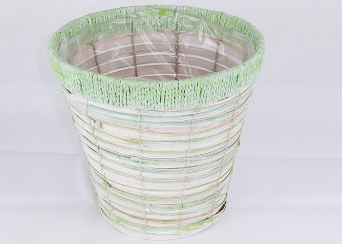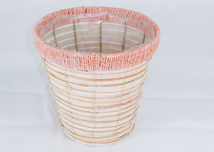 Cachepot righe pastello 22. 5x21cm contenitori in legno per arredo e composizioni, struttura in metallo, rivestito internamente con cellophane. Quantità inserzione: 1 cachepot. Dimensioni: 21x21 cm.