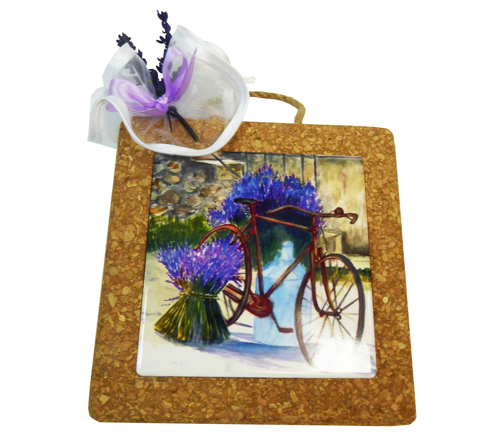 Bomboniere Matrimonio Anniversario Sottopentola Sughero Bicicletta Lavanda Sacchetto Stabilizzata (Codice: )